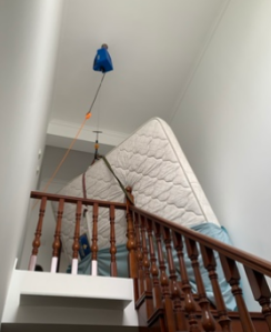 隨后經過老板的點撥,提示他可以來單位拿走小小的吊運機和懸掛式電動葫蘆,再經得客戶的同意下,將吊運機和電動葫蘆搬運到客戶的樓體上方,使用柔軟的吊裝帶將床墊捆綁結實,接通電源,再按動電動葫蘆的下降按鈕,使吊鉤下降到吊裝帶打結處,按動上升按鈕,笨重的床墊就會被輕松的吊運到高處。